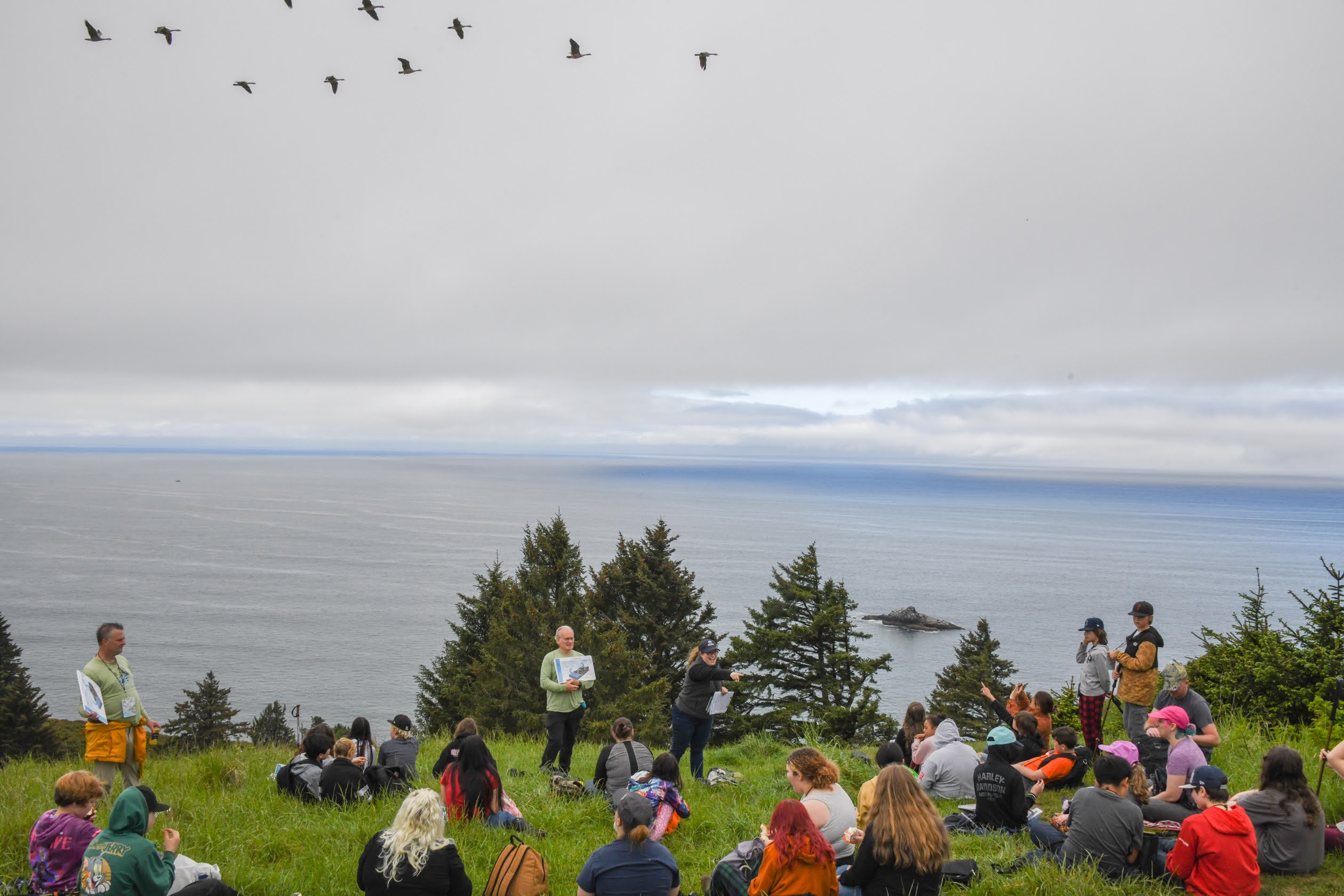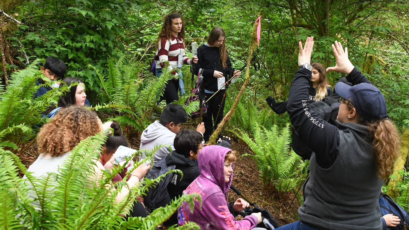 El Sendero de la Gota de Lluvia al Mar es un nuevo sendero educativo de la Colaboración de la Biosfera de Cascade Head (CHBR) que va desde la alta pradera “Knoll” sobre el Pulgar de Dios, luego a lo largo de una cuenca de bosque tropical costero a pequeña escala, hasta el borde del Lago Perdido y su presa de castores remanente, luego por el desfiladero y en un pequeño delta de abanico de estuario donde el afluente se encuentra con el río Salmón. Ocho círculos de aprendizaje a lo largo del sendero proporcionaron a los estudiantes tableros de campo educativos y códigos QR que enlazan con vídeos que muestran lo que le ocurre al agua cuando pasa de “la gota de lluvia al mar”.