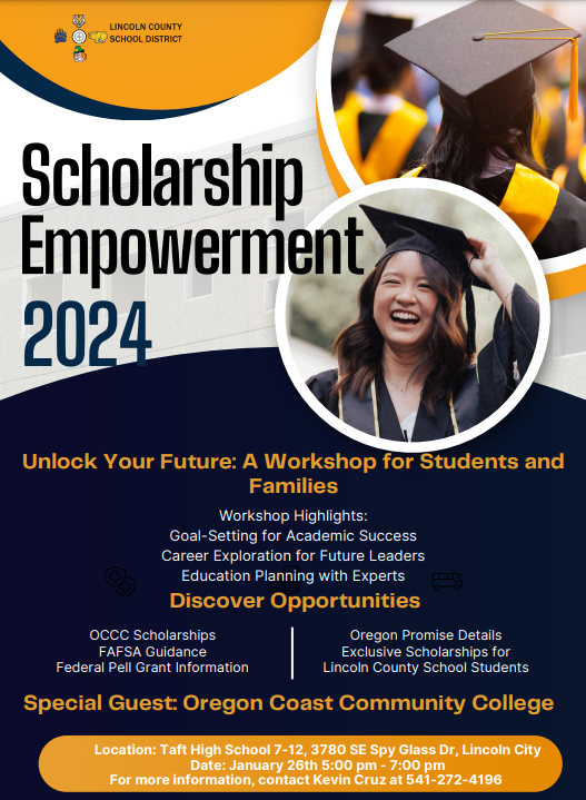 LCSD will host a Scholarship Empowerment Summit for students and families on January 26th, from 5-7 p.m. at Taft 7-12. This workshop is for students and families to learn about scholarships. FAFSA guidance, career exploration, and more!